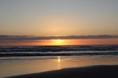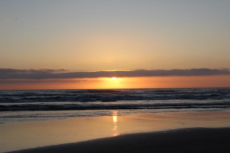 Keywords: sunset ocean coast sun sky water sea orange calm dusk waves coastline summer shore