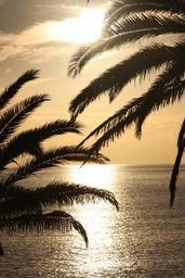 Keywords: sunset ocean palm nature reflection dusk water seascape sky glow tranquil