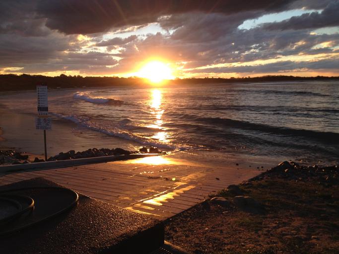 Keywords: sunset point plomer nsw australia beach sea ocean water orange sky forest island evening summer holidays