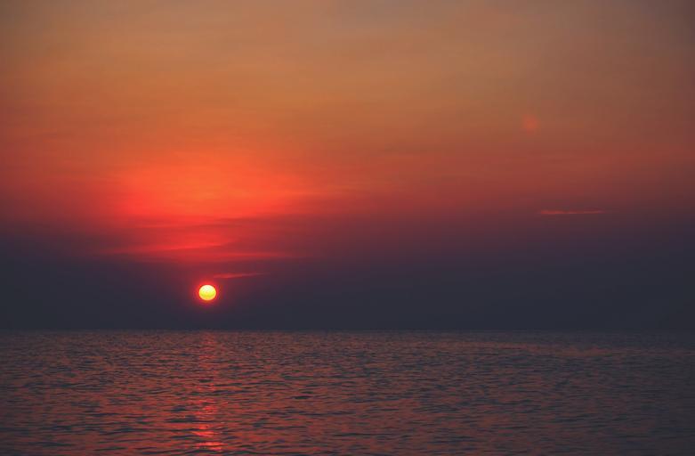 Keywords: sunset red ocean dark orange sun nature color sunlight evening dusk scenery reflection water sea