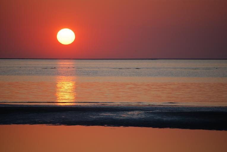 Keywords: sunset red orange evening afterglow sky evening sky abendstimmung sun mood yellow golden nature dusk atmosphere romantic setting sun romance water sea