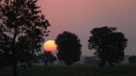 Keywords: sunset red sky afterglow sun evening sky evening orange abendstimmung dusk trees silhouette landscape