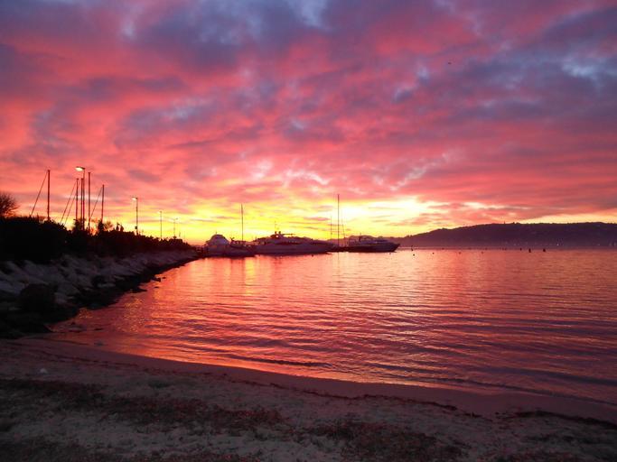 Keywords: sunset red sky galicia port cape antibes beach port boats