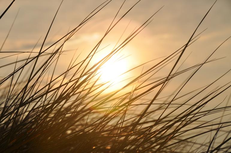 Keywords: sunset reed deichblick nordfriesland nature conservation bank afterglow grass sun