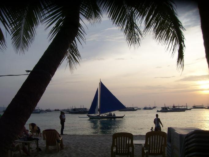 Keywords: sunset sailboat boracay island philippines silhouettes sea ocean beach relaxation nature vacation scenery