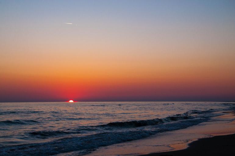Keywords: sunset sea beach water sun horizon atmosphere summer fly plane