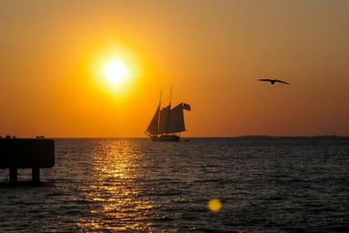 Keywords: sunset sea evening sky distant afterglow sky caribbean abendstimmung boats water sail