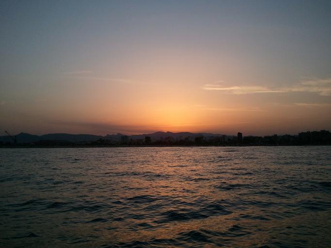 Keywords: sunset sea landscape sky color blue coastal calm sea peace twilight glow beach rest costa mediterranean