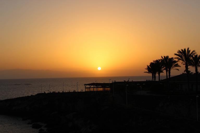 Keywords: sunset sea palm trees evening sky