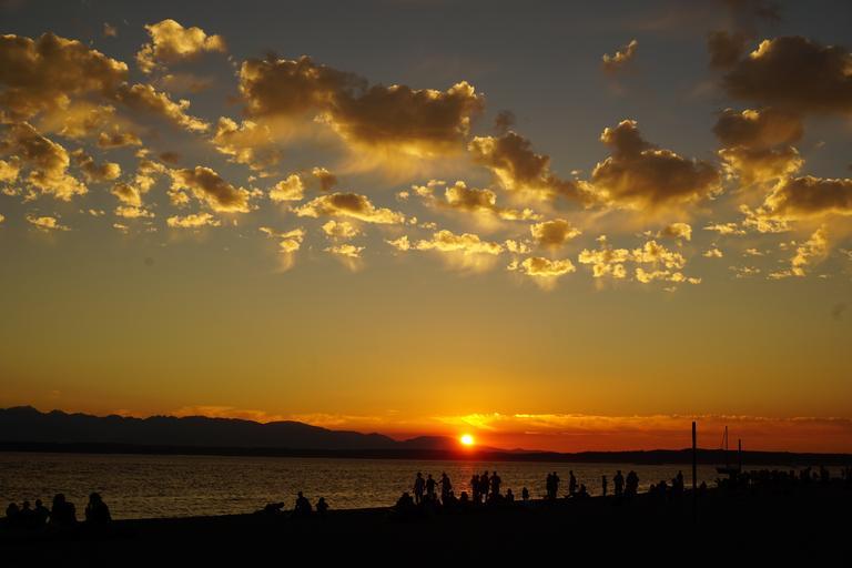 Keywords: sunset seattle beach sunset golden sunset horizon orange sky evening mountains sea water ocean sky