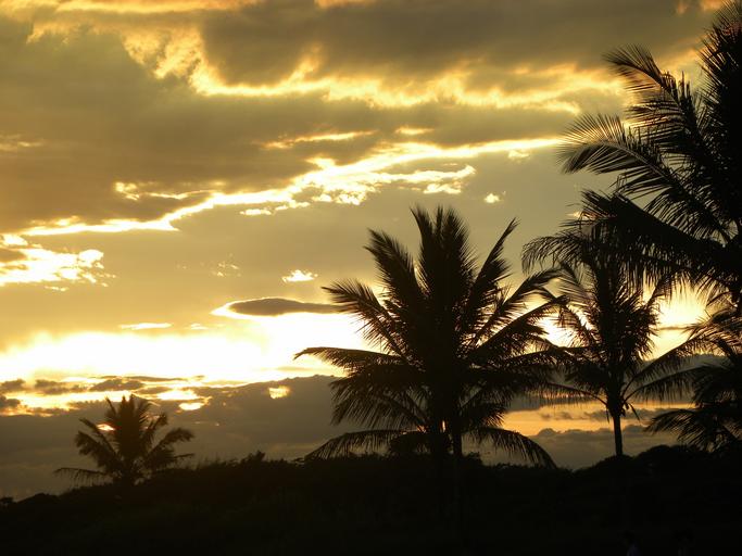 Keywords: sunset silhouette beach beira mar coconut trees yellow