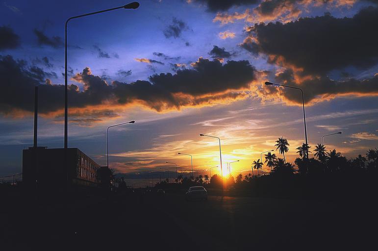 Keywords: sunset sky azure cloud evening sun silhouette light image view