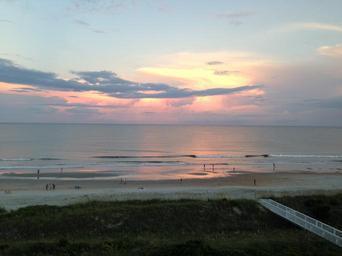 Keywords: sunset sky beach ocean horizon tranquil seaside sunset evening dusk