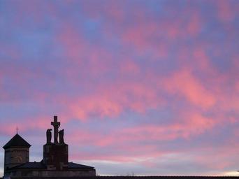 Keywords: sunset sky clouds afterglow church abendstimmung romance statue angel faith