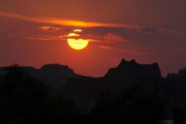 Keywords: sunset sky colorful hills sun yellow mountains dusk twilight clouds scene evening rugged scenic landscape badlands national park south dakota panorama usa