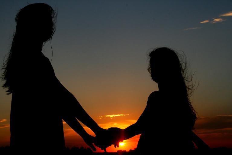 Keywords: sunset sun sisters girl shadow love sky in the evening
