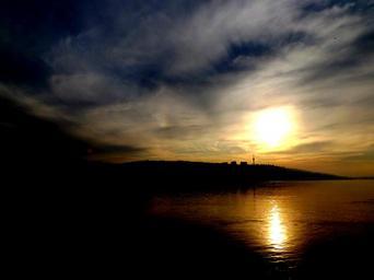 Keywords: sunset sun water cloud reflection in the evening orange