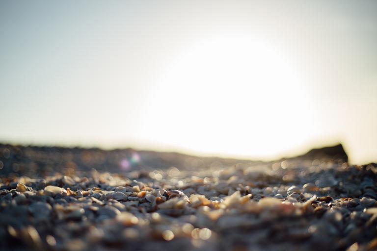 Keywords: sunset sunny beach sand sun rocks coast shore macro pebbles shells