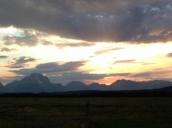 Keywords: sunset tetons landscape wyoming clouds scenic peak