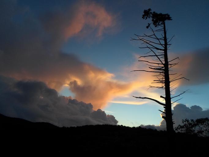 Keywords: sunset tree organic agriculture trunk branches sky clouds outdoors scenic tranquil weather meteorology cloudscape environment nature