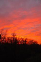Keywords: sunset trees evening sky red orange clouds summer forest