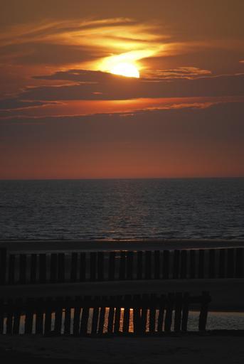 Keywords: sunset wangerooge lake north sea sea sky clouds sun reflection