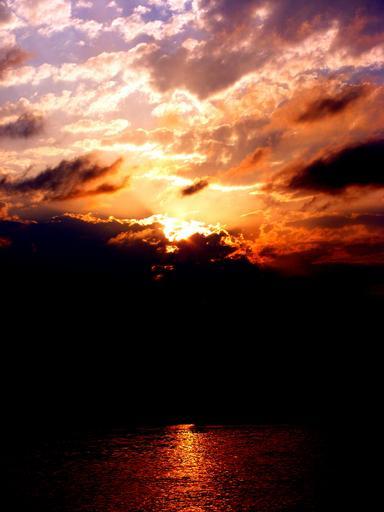 Keywords: sunset water cloud sky sun red reflection in the evening landscape black