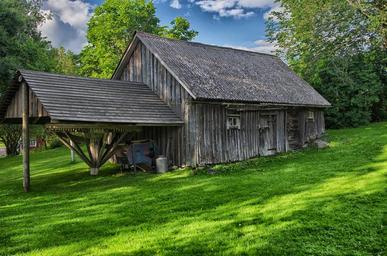 Keywords: suntak sweden landscape scenic farm rural rustic shed building wood wooden grass trees sky clouds nature outside country countryside summer spring