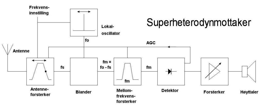 Keywords: Superhet.jpg Superhet receiver block diagram Own 2006-09-29 KjellElec Free to use Superheterodyne circuits Block diagrams