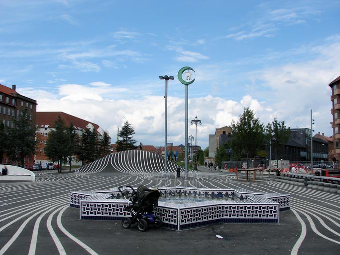 Keywords: Superkilen3.JPG Superkilen park på Nørrebro København I forgrunden ses et springvand fra Marokko own 2012-06 Orf3us Superkilen