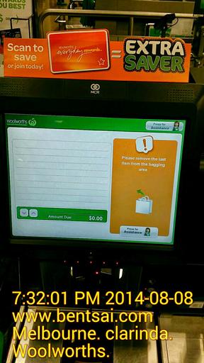 | Keywords: You are supposed to place your shopping basket with your grocery items on the right of the machine; however there are no signs to advise you on where to put the shopping basket. (I initially put my basket on the left of the machine - weighing area and was unable to process my payment due to system error) retail melbourne australia retail melbourne australia retail australia melbourne retail technology transportation signs foodanddrinks | ||||