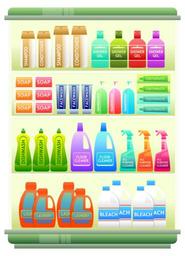 Keywords: supermarket shelf products shampoo household products cleaning products bath products detergent soap toothpaste goods clip art supermarket retail shopping merchandise