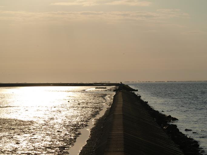 Keywords: surf wall north sea wadden sea natural heritage east frisia ebb evening sky intertidal zone sea sunset coast sky national park horizon dam