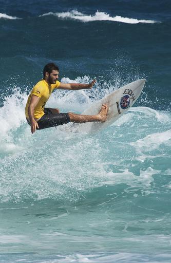 Keywords: surfer surfboard surfing wave water surf ocean hawaii young board fun spray foam balance