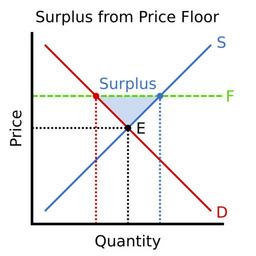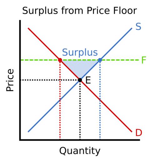 MAKE A MEME View Large Image Surplus from Price Floor.svg An illustrative supply/demand graph showing a price floor that has caused a market surplus shaded in light blue Line D red represents the demand price vs quantity demanded line S blue represents the supply price ...