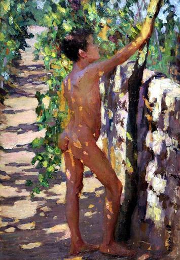Keywords: Susan Watkins (1875-1913), Study for Boys picking grapes at Capri (ca. 1906), 1.jpg ~ 1906 oil on canvas Overall 9 1/4 x 12 3/4 in 23 5 x 32 4 cm Institution The Chrysler Museum Norfolk http //www lesdiagonalesdutemps com/article-susan-105131214 html PD-old-auto 1913 Susan Watkins Paintings of Capri Paintings of nude boys Paintings of nude standing males Paintings in the Chrysler Museum of Art Boys' buttocks in art |
