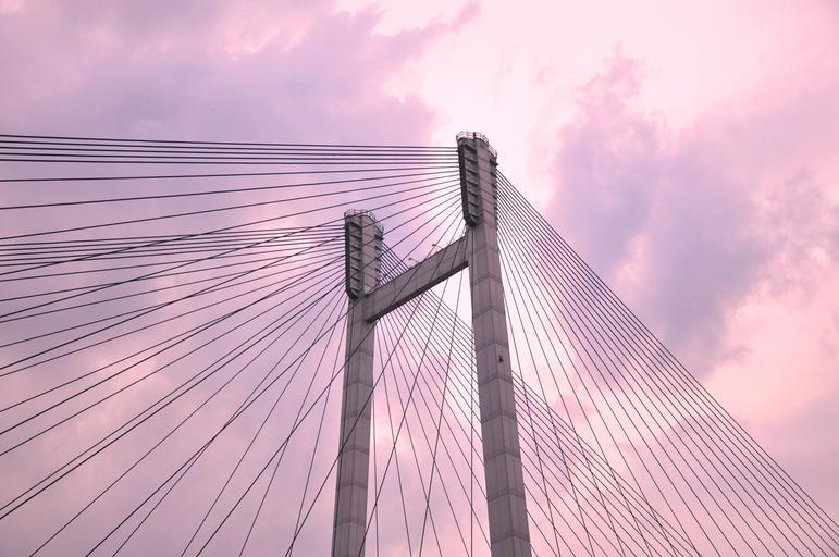 Keywords: suspension bridge cable bridge evening construction architecture bombay mumbai