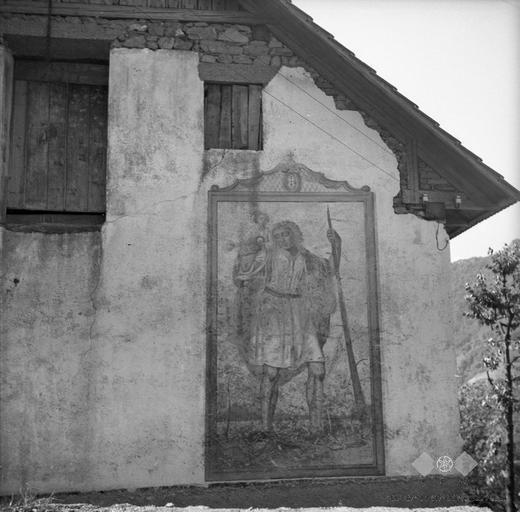 Keywords: Sv. Krištof na steni hiše pri Hlipču, Plužnje 15 (hiša je bila narejena leta 1856, tedaj tudi naslikan Sv. Krištof) 1954.jpg Sv Krištof na steni hiše pri Hlipču Plužnje 15 hiša je bila narejena leta 1856 tedaj tudi naslikan Sv Krištof freska/f0000011142 1954-08 creator Boris Orel watermark PD-Slovenia 1954 in Slovenia Plužnje 19th-century frescos in Slovenia Frescos of Saint Christopher in Slovenia 1856 paintings in Slovenia 1850s frescos Photographs by Boris Orel