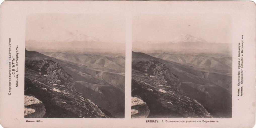 Keywords: Svet. Caucasus. 001. Eshkakonskay canyon from the bermamyt.jpg en Eshkakonskay canyon from the bermamyt mountain ru Эшкаконское ущелье с бе мамыта 1910 Stereoscopic collection of the SVET publishing author PD-old-100 Uploaded with UploadWizard Caucasus Stereo cards by SVET publishing