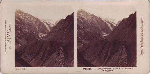 | Keywords: Svet. Caucasus. 007. Devdarak canion.jpg  en Devdarak canion ru Девдо акское ущелье с видом на ледник ka დევდ რაკის ხე ბა მყი ვარის ხედით 1910 Stereoscopic collection of the SVET publishing author PD-old-100 Uploaded with UploadWizard Caucasus Stereo cards by SVET publishing |