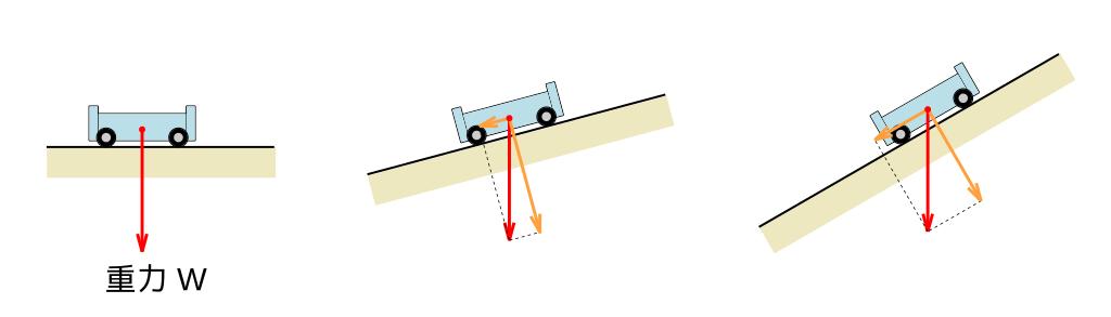 Keywords: 傾きによる重力の分力の違い.svg ja 傾きによる重力の分力の違い 2016-06-18 own すじにくシチュー other versions cc-zero Gravitation Vector force diagrams