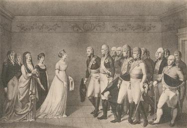 | Keywords: Svidanie imperatora Alexandra 1802.jpg  ru Свидание импе ато а Александ а I с ко олем и ко олевой п усскими в  емеле в 1802 году С г авю ы Вольдта сделанной с ка тины Делинга Обложка en Alexander I Czar of Russia meeting King Frederick William III and Queen Louisa in Memel 1802 de Alexander I Kaiser von Russland und der König Friedrich Wilhelm III mit der Königin Luise in Memel 1802 Scan from  К Шильде Импе ато Александ Пе вый Его жизнь и ца ствование Т II С -Пете бу г 1897 Printed 1897 scanned 2010 Делинг Вольдт scan by Alma Pater <span class signature-talk >talk</span> 13 51 23 January 2010 UTC PD-Art Alexander I of Russia in engraving Friedrich Wilhelm III of Prussia 1802 events 1897 engravings Alexander I of Russia in documentary paintings |