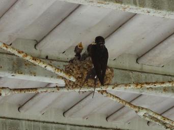 Keywords: Swallow nest 3.jpg en Swallow's nest and juvenile Hirundo rustica nests with chicks