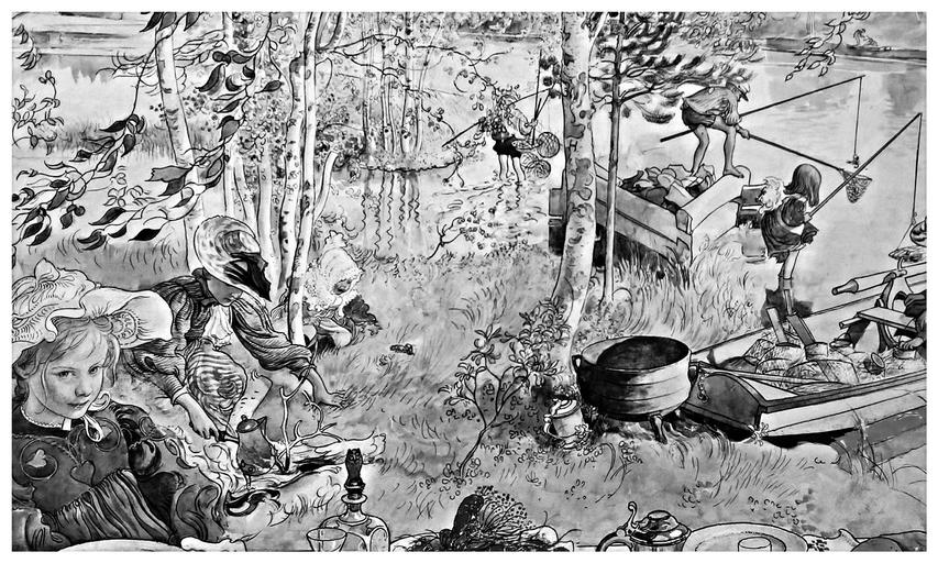 Keywords: sweden art swedish artist carl larsson crayfish fishing black and white photography popular traditionally