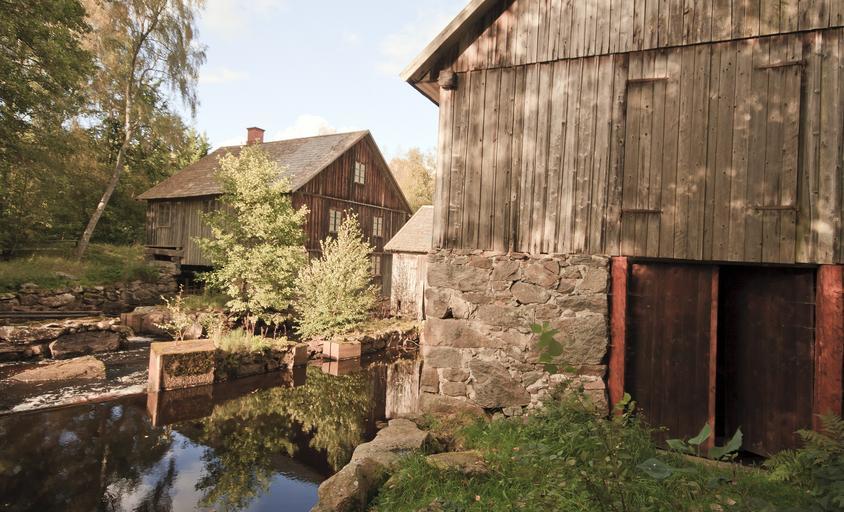 Keywords: sweden barn house home wooden farm rural rustic stream creek water reflections rocks nature outside country countryside