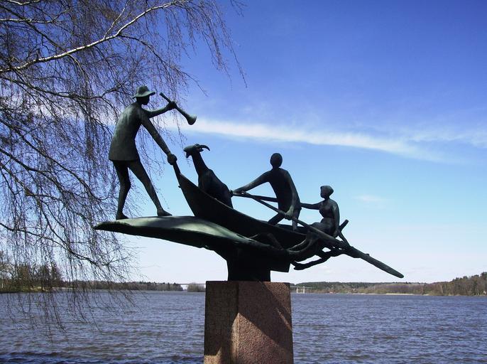 Keywords: sweden lake water forest trees woods sculpture monument art sky clouds nature outside silhouette