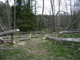 Keywords: Sweden. Stockholm County. Tyresta National Park 011.JPG en Sweden Stockholm County Tyresta National Park own Albertyanks - Albert Jankowski 2010-05-09 Tyresta National Park Trees damaged by beavers 2010 in Tyresö Municipality