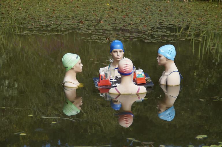 Keywords: swim swimmers water pond lake swim cap women female doll art art object botanical garden ulm mirroring waters bathing mermaids mermaids mermaid meeting talk chat gambling group four