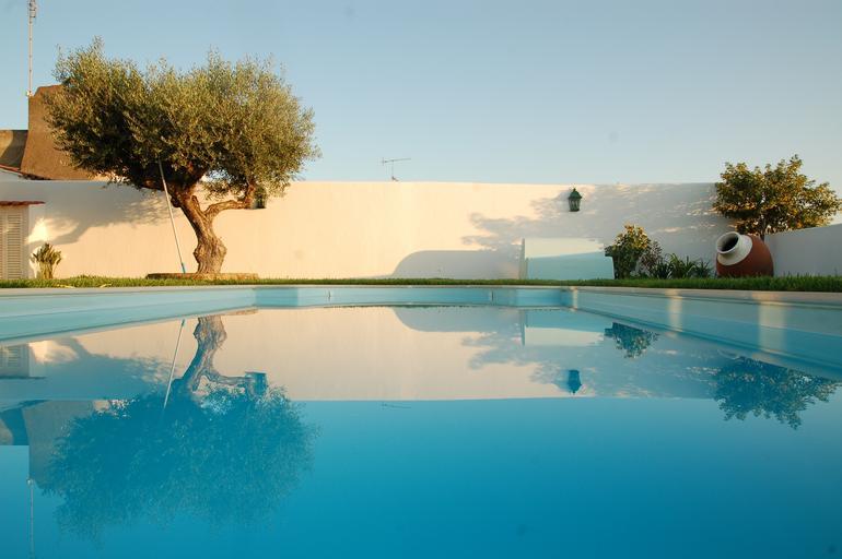 Keywords: swimming pool water reflection tree olive summer sunny sky light portugal white wall day outdoors alentejo