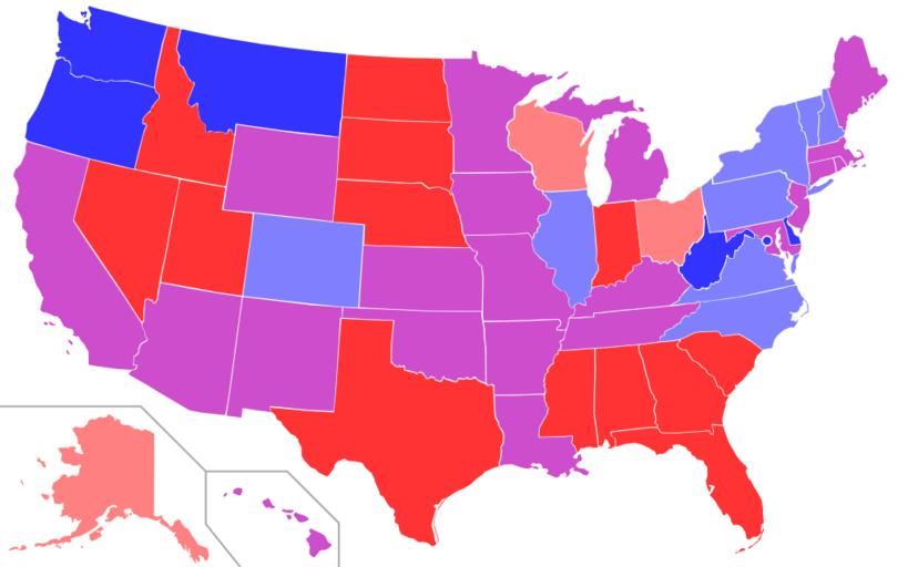 Keywords: Swing states in gubernatorial elections.svg 3333FF 4/4 Democratic 8080FF 3/4 Democratic CD4DCD 2/2 Split FF8080 3/4 Republican FF3333 4/4 Republican own MB298 2016-12-29 United States gubernatorial election maps SVG maps by MB298